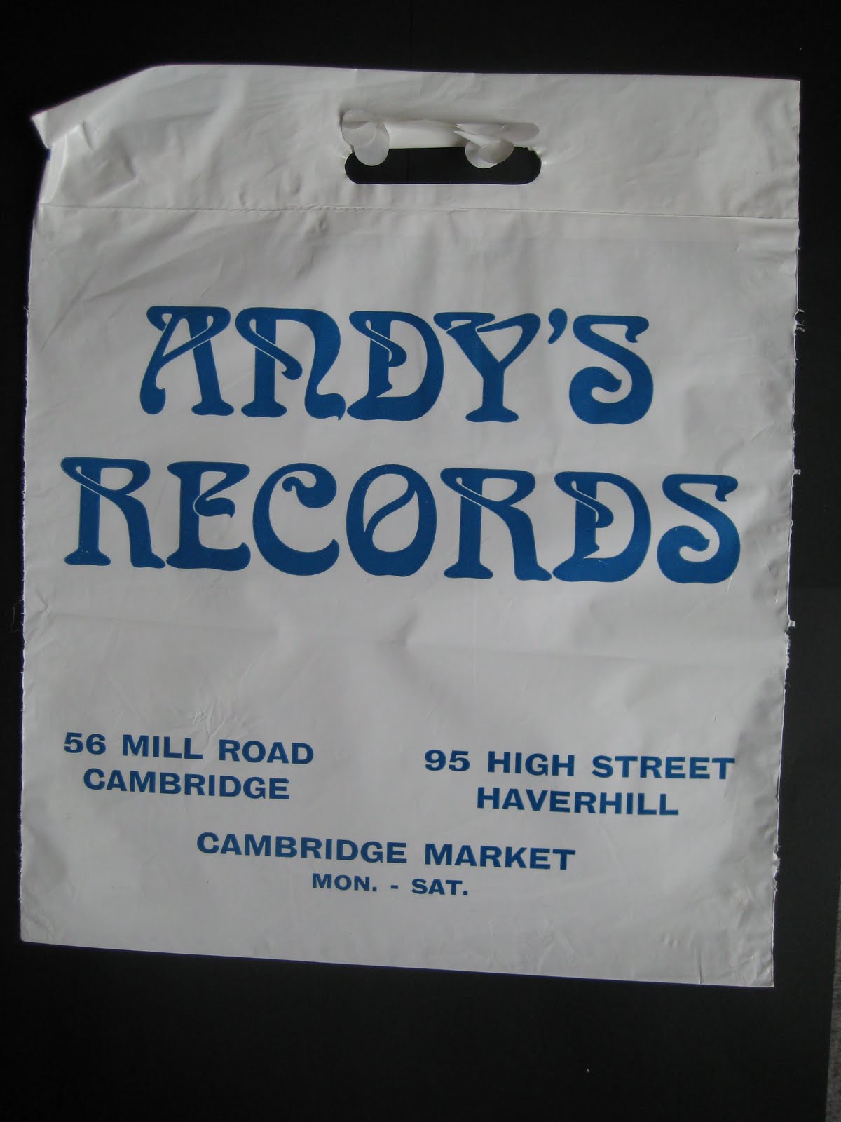 ReplyDeleteI came to this late - after seeing your comment on Monkey Picks. I'd love to know if you have one from Parrot Records, an independent with stores around East Anglia. The logo was a cartoon parrot smoking (probably too un-PC now). I worked full-time in one of the branches for over three years and you know, I never kept a bloody bag. Not that I want one - but it'd make me smile to think there might be one somewhere...